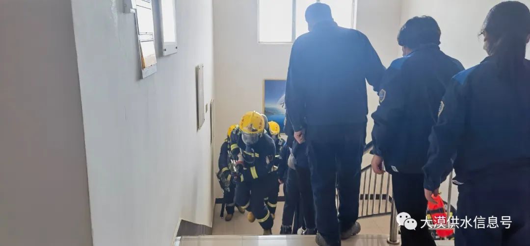 演练以自来水厂办公楼二楼因电路老化造成线路短路起明火,导致人员被困,随后因火势扩大危及水厂各车间安全为背景展开。演练模拟了发现险情、启动预案、紧急疏散、营救被困人员、火势控制、环境评估、供水设施、设备评估等环节,演练过程中各单位严格按照规范要求完成演练内容,相互配合、紧密协作。