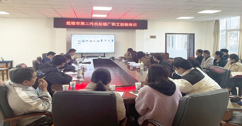 楚雄市污水处理厂污泥处置工程是楚雄市水环境综合治理 PPP 项目8个子项目之一,项目在参建各方的努力下加快推进,2022年年底楚雄市污水处理厂污泥处置项目主体建成。根据楚雄市供排水公司统筹安排,1月4日分管领导到厂对污泥处置项目运行做进一步工作安排,1月6日起第二污水处理厂安排现有人员进入污泥处置项目参与调试运行。1月7日,第二污水处理厂召开部门会议,就污泥处置项目调试运行和相关基础操作进行统一学习培训。会后,全厂职工到污泥处置项目进行现场操作学习,根据安排,相关人员进入污泥干化的实际岗位进行轮岗值班。