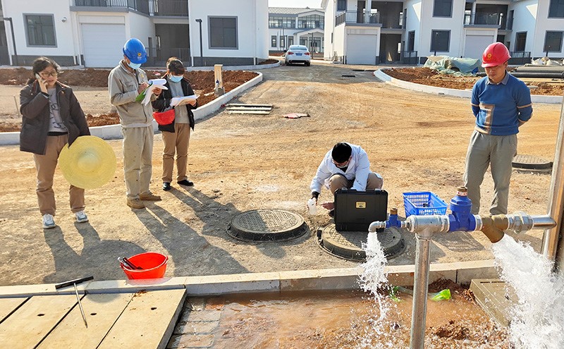 验收工作组从每一个主管的开口处、管道、中途的阀门井至每一个水表箱都进行了认真、细致的查看,对发现漏水现象的地方进行了现场处置,对发现其他安装问题都做了详细记录和整改,并现场检测水质,所有管道水质各项数值均达到国家饮用水卫生标准,验收合格。