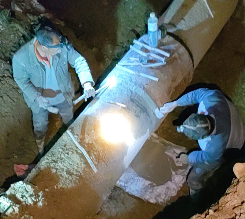 由于施工现场情况复杂且有两个爆裂点,维修队在一个爆裂点抢修完成后又继续赶往下一个爆裂点,直到2月2日凌晨1点才顺利完成抢修任务,于凌晨3点恢复供水,确保了城区早高峰正常用水。