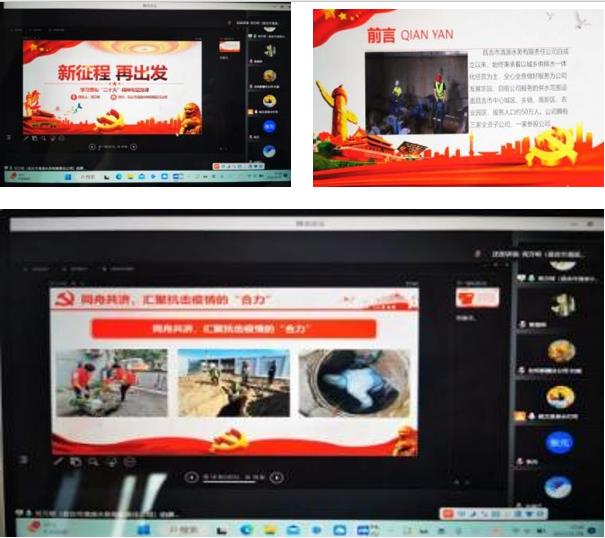 第二联合党支部联合举办“同心向党迎盛会、团结奋进新征程”“重温二十大报告、携手奋进新征程”等主题党日活动。推荐自治区先进基层党组织、昌吉市清源水务有限责任公司党支部书记、总经理党万明同志以《新征程、再出发》为题进行了党课学习交流。推荐自治区优秀共产党员、奎屯市清源供水有限公司管网所所长安学军同志作为企业支部代表在会上进行了心得体会交流。