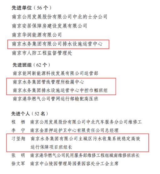 南京水务集团在省住建系统职工劳动竞赛活动中荣获多项荣誉
