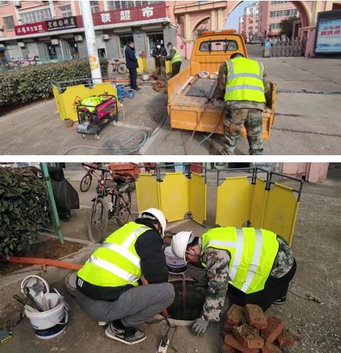 紧接着,抢修人员在漏水点周边区域放置安全围栏和安全警示标志,落实现场安全措施后,进入井内进行维修,他们分工有序,配合默契,速战速决完成维修工作。