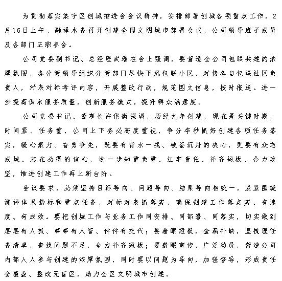 乌兰察布市融泽水务有限责任公司 召开创建全国文明城市部署会议