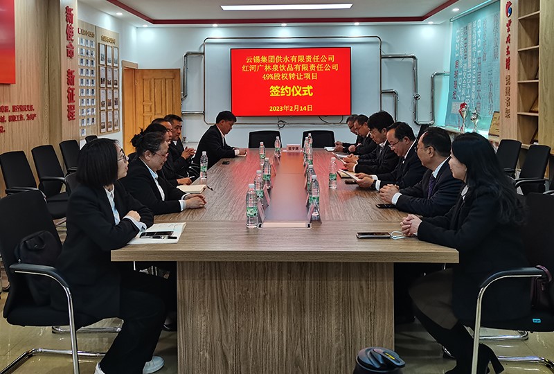 2月14日,广元公司下属云锡供水公司与红河广林泉饮品公司自然人股东正式签订《产权交易合同》,实现供水公司所持广林泉公司49%股权转让,标志着广元公司辅业退出工作取得阶段性成效。此次签约是双方合作的良好开端,是广元公司整体优化战略布局、科学决策的结果,也是贯彻落实控股公司“主辅分离、整体上市、市场化改革”的发展思路及国企改革三年行动实施方案相关决策部署。积极推进辅业退出的工作,承载了双方对矿泉水业务未来美好发展的期待,云锡供水公司将本着诚实守信、精诚合作、互惠共赢的原则,严格按照合同要求,与红河广林泉饮品有限责任公司通力协作、积极推进,确保股权转让后续工作圆满完成。广林泉公司将一如既往以用户需求为导向,以用户满意为出发点和落脚点,为广大用户提供更加优质的服务。