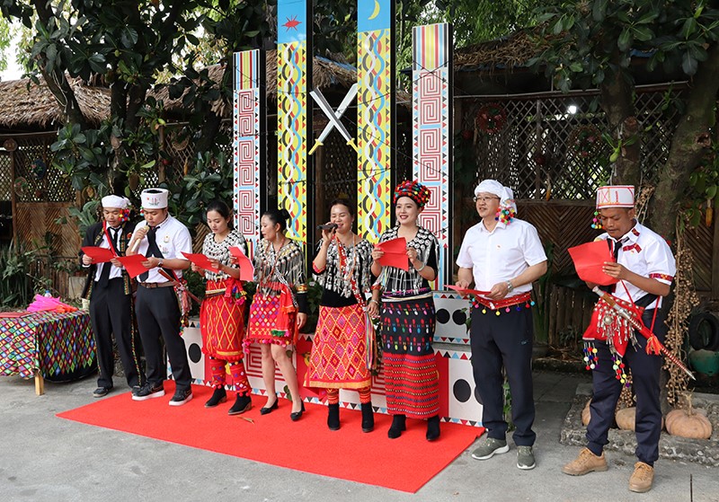参观完后,全体同志来到景颇族文化园。3位党员同志分享近期阅读的《南宋沙场》《伟大的梦想》《共产党员的力量》心得。一本党建读物,就是一份精神食粮,使党员从中汲取红色基因,找寻奋进的力量,坚定了理想信念,传播正能量;接着举行了党的二十大精神及民族团结知识竞答,“党的二十大主题是什么?”“德宏州世居少数民族有几种?”“德宏州直过少数民族是哪几种?”……参与活动人员频频举手,气氛热烈欢畅,回答正确,由工作人员现场送上一本党建读物作为奖励。沉甸甸“精神食粮”极大地激发党员参与活动的热情,进一步提升了学习知识的效果;之后,景颇族职工、傣族职工分别用民族语言热情高歌《唱新歌给党听》《人们向往地地方》;主题活动正值景颇族“目瑙纵歌节”不久,最后,由景颇族职工带领大家共跳目瑙纵歌舞。