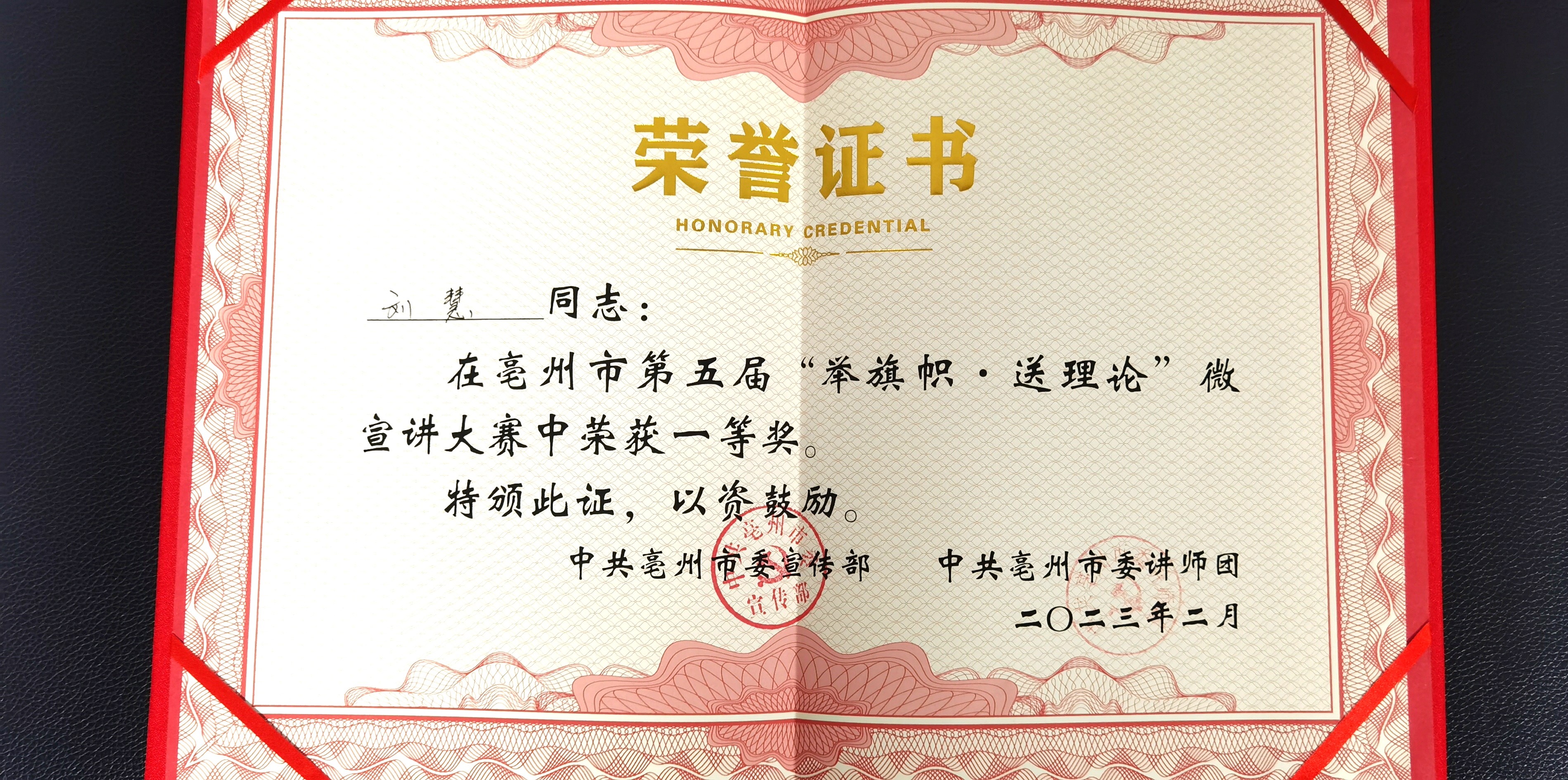 亳州市第五届“举旗帜·送理论微宣讲大赛中市自来水公司选手荣获一等奖