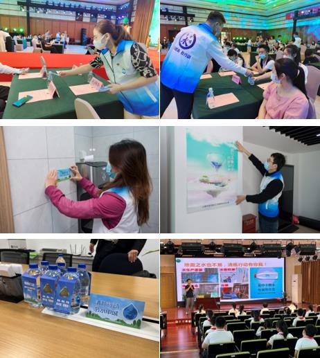 上海市供水管理事务中心(上海市节约用水促进中心)节水先锋志愿服务队以“全国科普日”和第五届进博会为宣传契机,同时结合日常节水服务和走访工作,陆续走进上海科学会堂、徐汇实验小学、长宁新泾社区书院和多家用水企业开展“清瓶行动”节水宣传志愿服务活动,在会场、教室布置海报、标语、桌牌和易拉宝,为瓶装水装上“请带走没喝完的瓶装水”标签,用暖心的志愿服务助力营造“清瓶行动”良好宣传氛围。