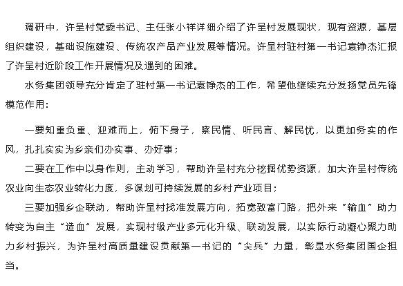 水务集团领导前往许呈村调研并看望慰问驻村工作人员