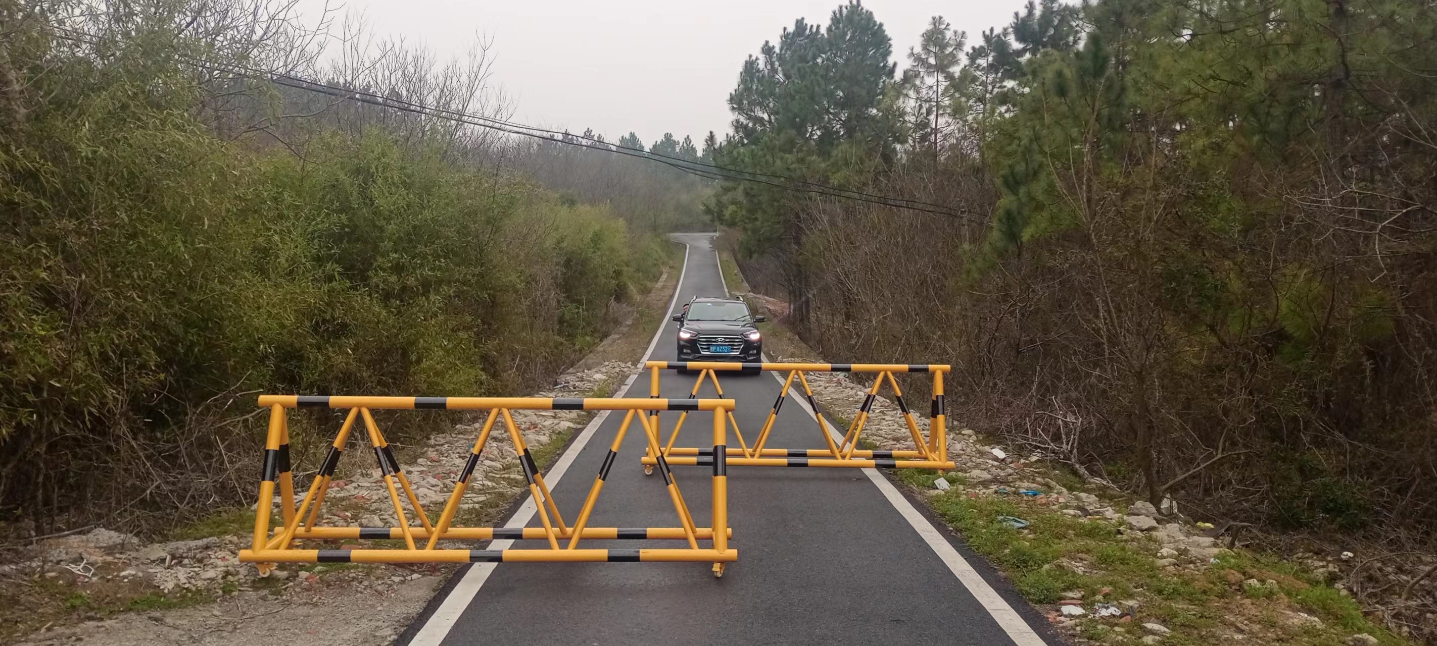 演练在接到演习反恐预警后,安防人员紧急集合,携带防暴、反恐器械,同时在通往水厂的道路上,设置了两道拒马,阻止暴恐分子冲击水厂大门。