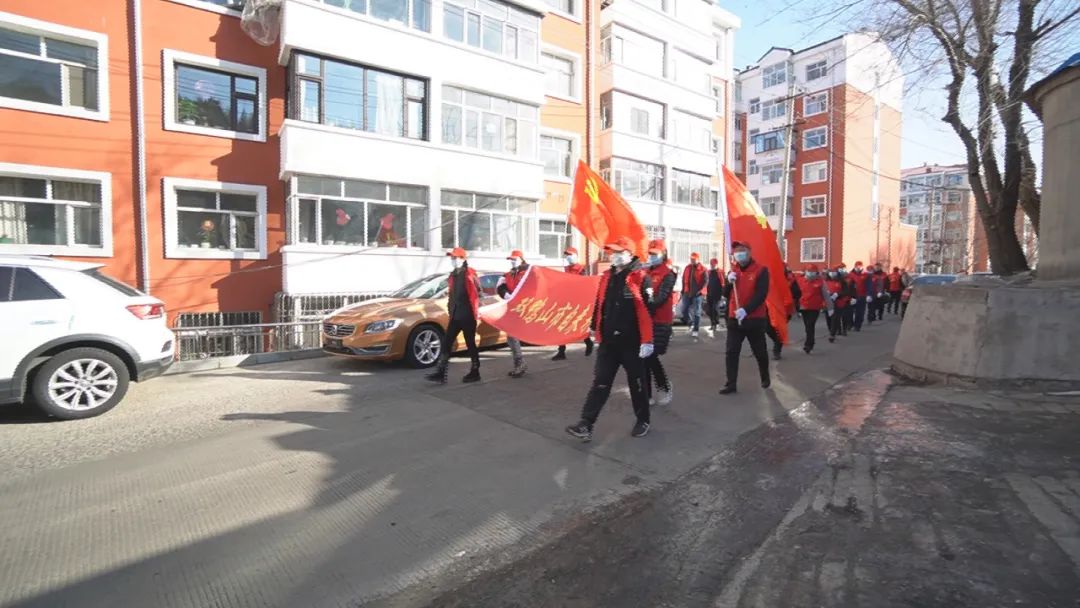 3月5日上午8时,志愿队一行在北环山路统一集合,分成3个小组,各小组高举党旗,悬挂标语,热情高涨,配合默契,团结协作,对环山路环境进行集中清理。