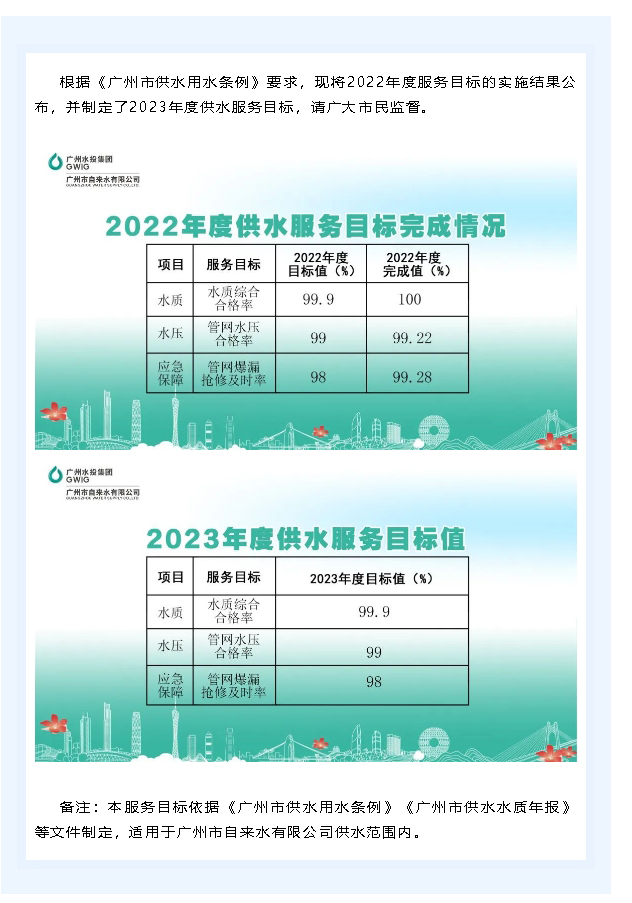 2022年度供水服务目标完成情况及2023年度供水服务目标