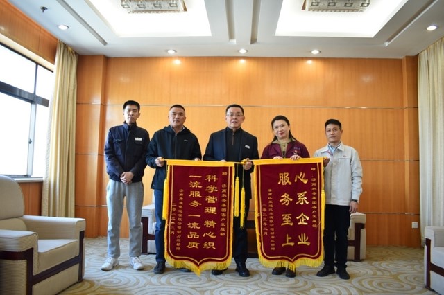 “从2021年我们项目落地,开始有用水需求到挂表通水,水务集团一直从我们企业的立场出发,主动上门,热情服务,办理流程是简化再简化,真正做到了精心管理、科学施工,使我们这两年切实感受到了济南市营商环境的贴心服务。”2月20日,济南比亚迪汽车有限公司将写有“心系企业,服务至上”和“科学管理精心组织,一流服务一流品质”的锦旗送到了集团公司,感谢水务集团对比亚迪新能源乘用车、济南弗迪电池建设项目接水工作所做的一系列细心、贴心、暖心的服务举措。济南水务集团副总经理刘军作为代表接受了锦旗,并表示:“做好供水服务是我们的应尽之责,我们供水人就是要心系群众,服务城市发展,尽全力做好用水保障和服务。”