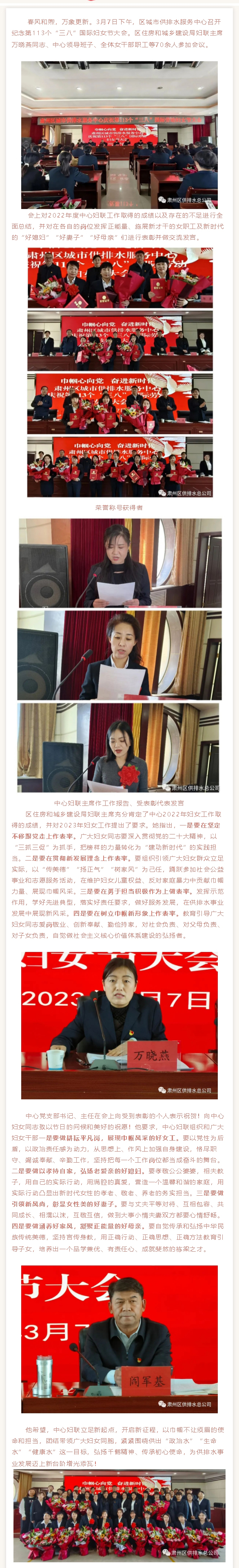 贡献巾帼力量 彰显巾帼担当—区城市供排水服务中心召开庆祝第113个“三八”国际劳动妇女节大会