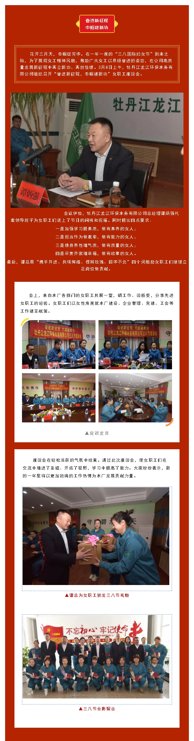 牡丹江龙江环保水务有限公司召开“奋进新征程,巾帼建新功” 女职工座谈会