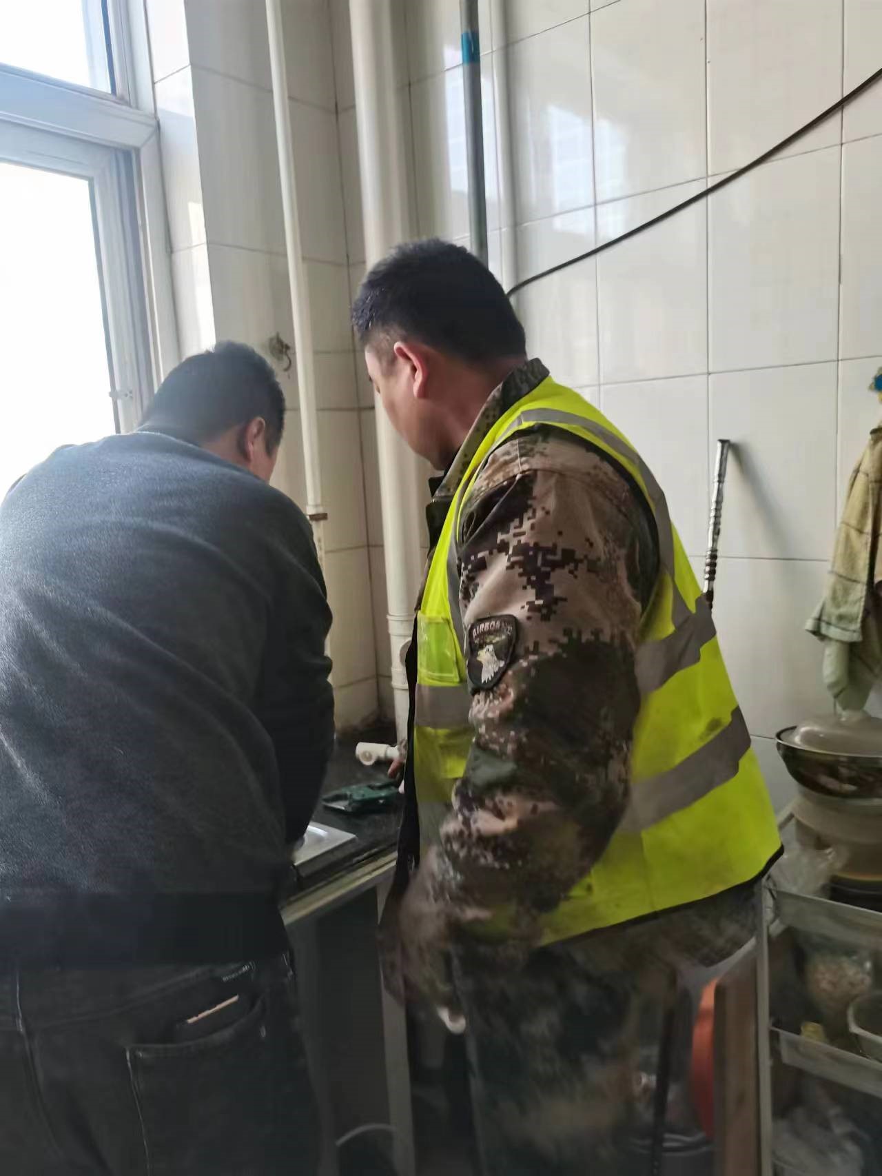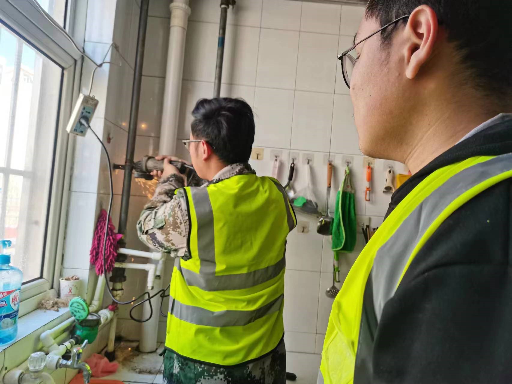 2月23日下午2:00,华龙水业接到县城“府东小区”20#楼一用户来电:家中自来水管道漏水,请速解决。“抢修就是命令”,公司“供水抢修服务先锋队”接到来电,立即组织员工带齐工具、维修材料,以风驰电掣之速度,火速赶到用户家中。经过认真排查,确定二楼铸铁管道系年久腐蚀漏水,经住户同意,将铸铁管全部改为R管。俗话说,“一动百枝摇”。改造二楼的供水管道须从三楼开始。抢修人员首先关闭该单元供水阀门,控净管道余水,从上望下切断三楼铸铁管,洗菜盆和通往二楼的部分铸铁管保留,插入20R管引至二楼。施工进展到此,抢修人员分组施工,楼上楼下同时进行,双方用“呼机”互相协调进度。抢修人员配合默契,动作娴熟,如行云流水,效率很高,试水一次成功。这次维修速战速决仅用1小时,用户啧啧称赞,很是感谢。