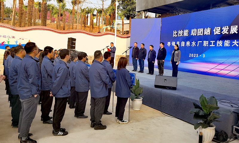 3月8日上午,县总工会、县自来水厂联合举办的寻甸县供水系统2023年职工技能大赛在县城第四水厂举行。县人大常委会党组副书记、副主任、县产改领导小组副组长、县总工会党组书记、主席蒋儒坤出席竞赛活动开幕式,云南省城镇供水协会、县水务局、县总工会主要负责人参加竞赛活动。
