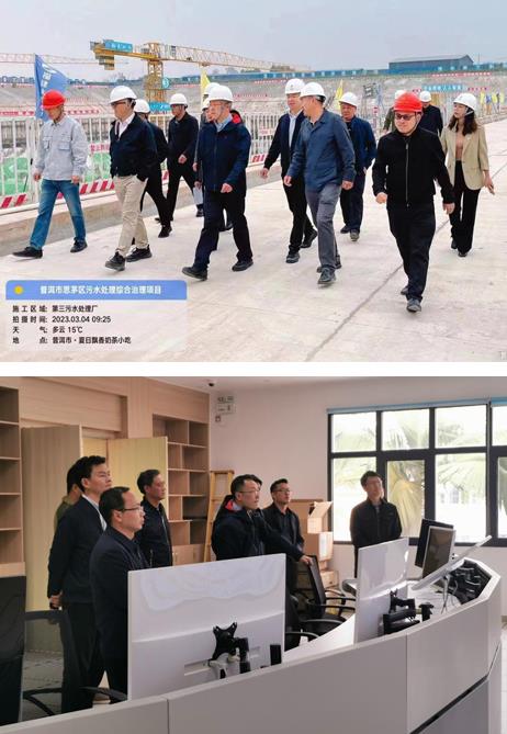 近日,省住房城乡建设厅副厅长边疆一行,到普洱市就城市管网普查、雨污分流改造、生活污水垃圾治理及黑臭水体整治情况进行实地督导调研,期间到普洱市水务公司第三污水处理厂项目建设地和公司办公大楼智慧水务机房进行实地走访了解。普洱市相关部门负责和思茅区人民政府领导陪同调研。