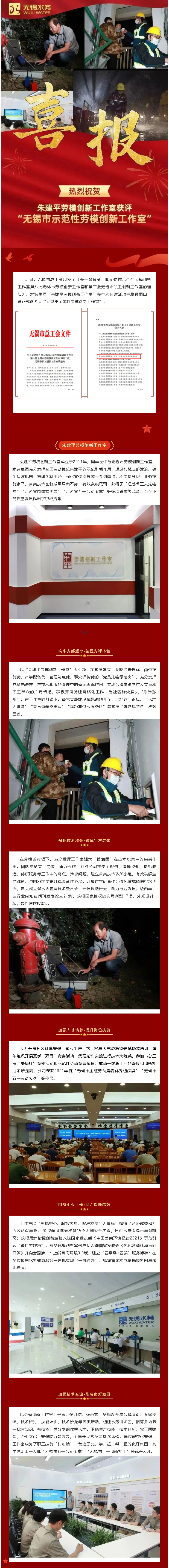 全市示范!无锡水务朱建平劳模创新工作室获评“无锡市示范性劳模创新工作室”
