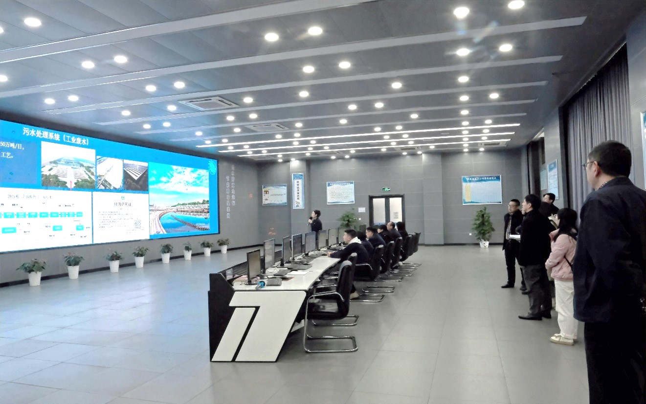 在调研现场,评估值听取了调度指挥中心关于污水处理的工艺讲解,先后实地查看了工业污水处理系统和生活污水处理系统。