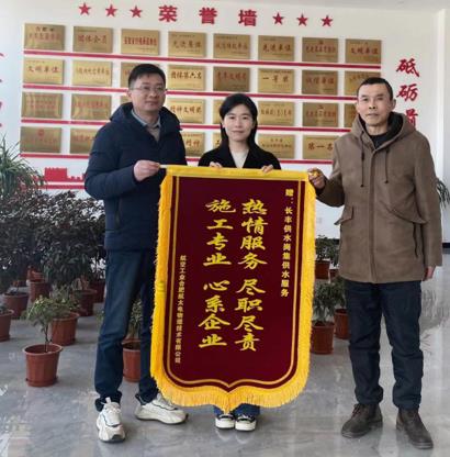 “热情服务,尽职尽责;施工专业,心系企业”这是近日岗集镇的航空工业合肥航太电物理技术有限公司赠送给长丰供水集团岗集供水所的一面锦旗,从中彰显了“供水人”为企服务的满腔真情。