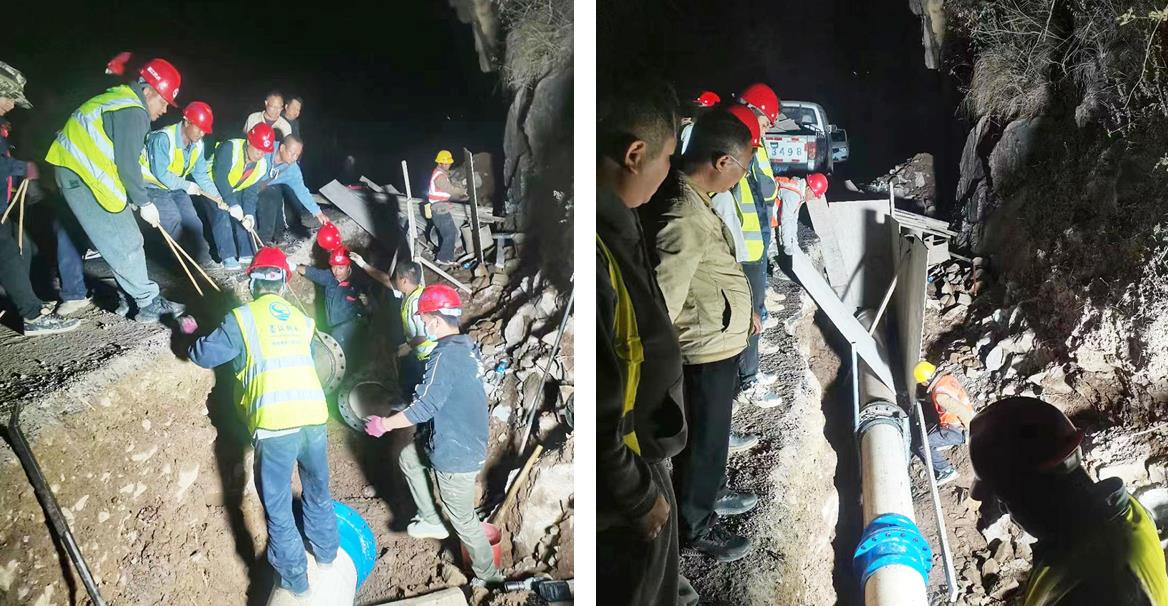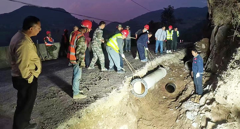 接到电话通知后,公司立即启用第一净水厂对县城及周边进行供水;工程技术部迅速响应,准备抢修设备、材料,立即集结工作人员赶赴现场,关阀止水、划定作业面,紧张抢修工作随之展开。为缩短停水时间,尽快恢复供水,经过工作人员从白天到黑夜奋力抢修,轮番作业,经过10多个小时的作业完成抢修任务,于次日上午12时左右顺利恢复供水。