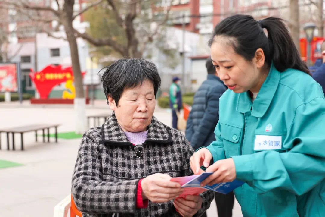 在活动现场,自来水公司党委向营业处党支部“水管家”服务队授旗,百余名身着工作服、佩戴服务标志的“水管家”,向周边群众开展供用水知识宣传。
