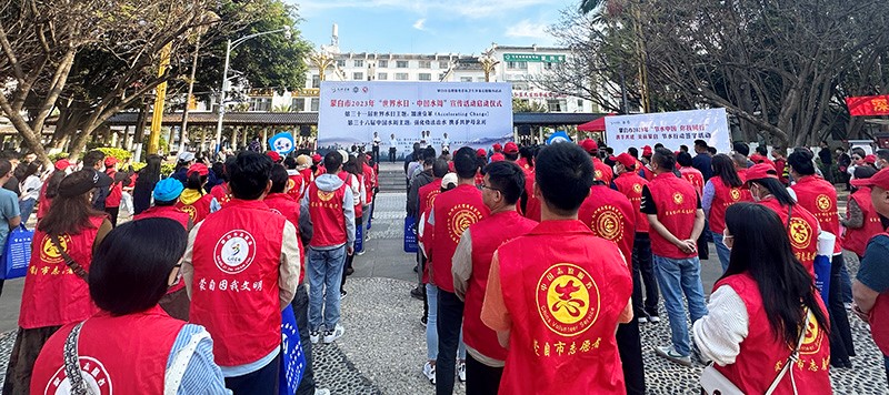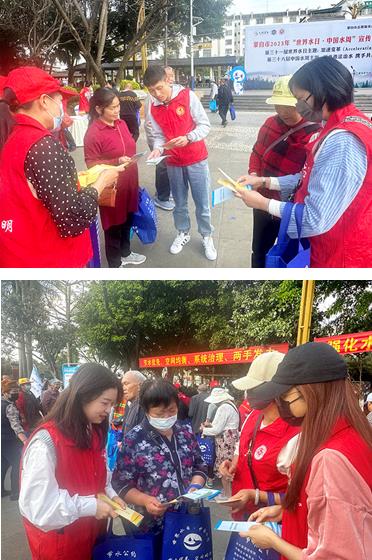3月22日,蒙自市2023年“世界水日·中国水周”宣传活动启动仪式暨蒙自市志愿服务总队“强化依法治水、携手共护母亲河”卫生环保志愿服务活动在南湖广场举行。蒙自城镇供水公司组织10名志愿者,积极参加宣传志愿服务活动。