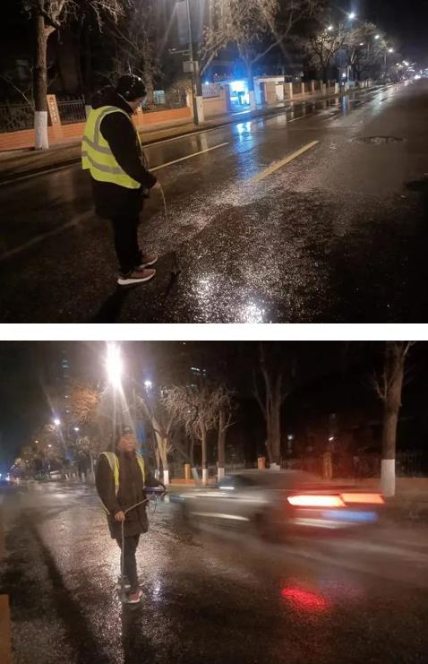 随后,检漏人员以最初流水的位置为圆点,使用听漏仪在三四米半径的范围内排查。通过听漏仪听到地下已经声音非常时,检漏人员就用钻打了两个眼。此时,水就像喷泉似的,呼一下喷了出来,检漏人员找到了管道漏水的位置。紧接着,维修工人们很快修补了漏点,而捡漏人员与维修师傅们一起清扫地面上的积水,并立刻赶往下一处漏水地点。