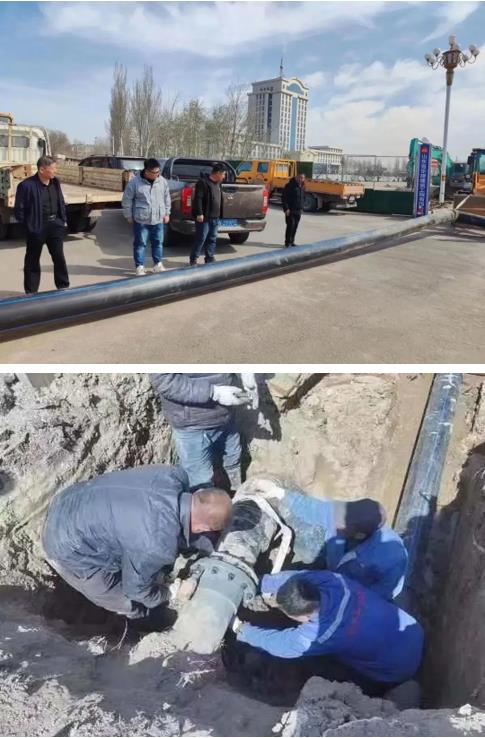 为配合乐陵市盘河生态治理项目湖滨东路路面施工,乐陵水务发展有限公司决定对张园子桥处管道进行改造。为保障市民用水,计划先安装临时管道保障正常供水,等施工完毕后再移回原位置,并下落至2.5米,此次改造将原有DN250PVC管道改为DN315PE管道,全长约130米。