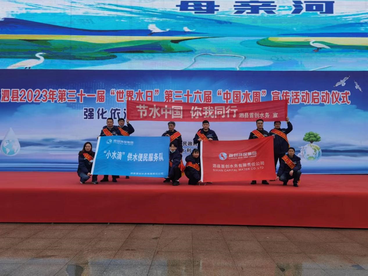 为纪念2023年第三十一届“世界水日”、第三十六届“中国水周”,3月22日,泗县首创受县水利局邀请参加在泗县府前广场举办的“强化依法治水 携手共护母亲河”为主题现场宣传活动。