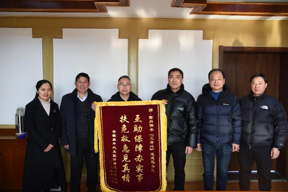 日前,奥丰公司将一面印有“互助保障办实事 扶危救急见真情”的锦旗送至滁州市自来水有限公司,向自来水公司真诚纾困表示感谢,简短的十四个字,满含着企业的信任和感激。
