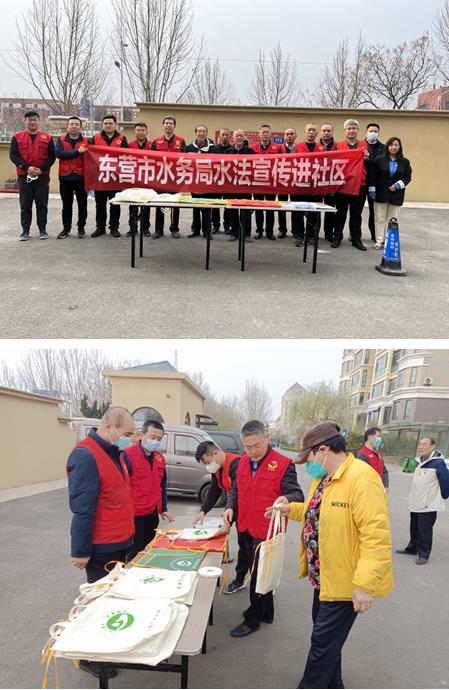 在2023年第三十一届“世界水日”、第三十六届“中国水周”到来之际,3月22日上午,东营市自来水公司与东营市水务局联合组织党员和志愿服务者来到金湖帝景小区开展水法宣传进社区活动,活动紧紧围绕“强化依法治水 携手共护母亲河”主题,开展了形式多样、丰富多彩的活动。