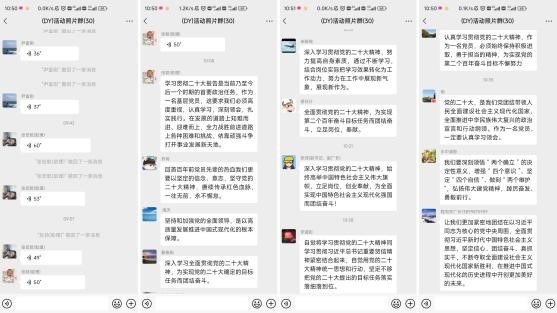 除4名宣讲员的激情宣讲以外,其余党员纷纷对宣讲员宣讲内容展开讨论,立足自身工作岗位,用真心话、真感情向大家传递真感受,充分展示了党员们对未来的殷切期待以及坚定信念跟党走、奋进新征程的意志决心。石墩子山水厂党支部书记、厂长程向宇在群内说道“让我们更加紧密地团结在以习近平同志为核心的党中央周围,全面贯彻习近平新时代中国特色社会主义思想,坚定信心、团结奋斗、真抓实干,不断夺取全面建设社会主义现代化国家新胜利,在推进中国式现代化的历史进程中开创更加美好的未来。”