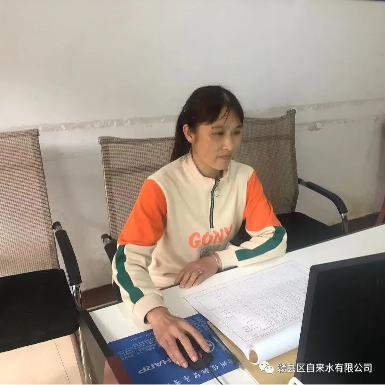 王冬香是客户服务中心的一名抄表员,主要负责城区智能水表的抄表工作。一个工作手机、一个智能抄表机、一沓抄表手账本、一个加密阀、一只手电筒、一支笔、一本记录本、一个包,带着这一身“行头”穿梭在赣县城区的每个角落。无论严寒酷暑,她始终在重复着这样的一条龙服务,对接小区物业管理,做好水表的上户编号工作,抄水表催水费、开阀、关阀,一旦用户反映问题,她第一时间联系厂家的技术人员上门处理。她热爱自己的工作,用心为她抄过的每一块水表数字负责,诚心为每一位用水户服务,在最平凡的岗位上奉献自己的光和热,为公司事业的蓬勃发展贡献一份力量!