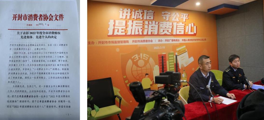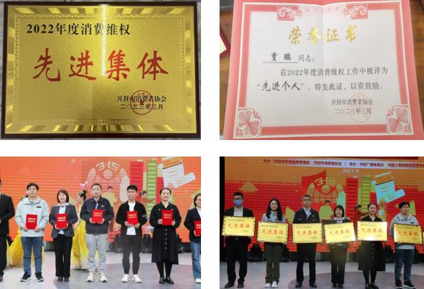 2023年3月9日下午,由开封市市场监督管理局、开封消费者协会主办,开封广播电视台等公司承办的“开封市2022年度消费维权先进集体、消费维权先进个人表彰大会”在开封广播电视台隆重举行。开封城市水务集团荣获“2022年度消费维权先进集体”荣誉称号;集团公司员工贾鹏被授予“2022年度消费维权先进个人”,集团公司副总经理于海波代表公司接受颁奖。