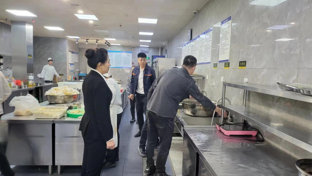 供排水公司工作人员检查代表队入驻宾馆后厨用水设施