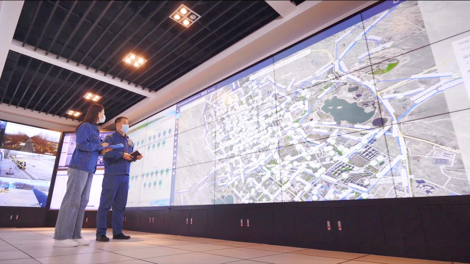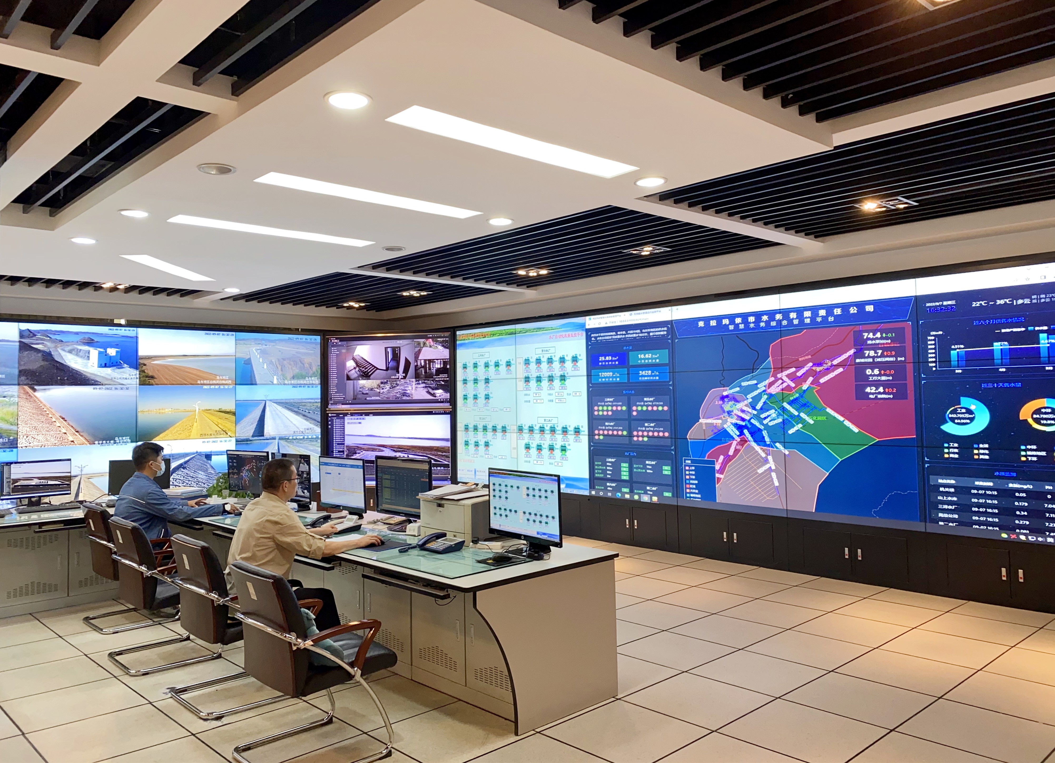克拉玛依市水务公司员工在调度指挥中心利用智慧水务系统远程调配水量