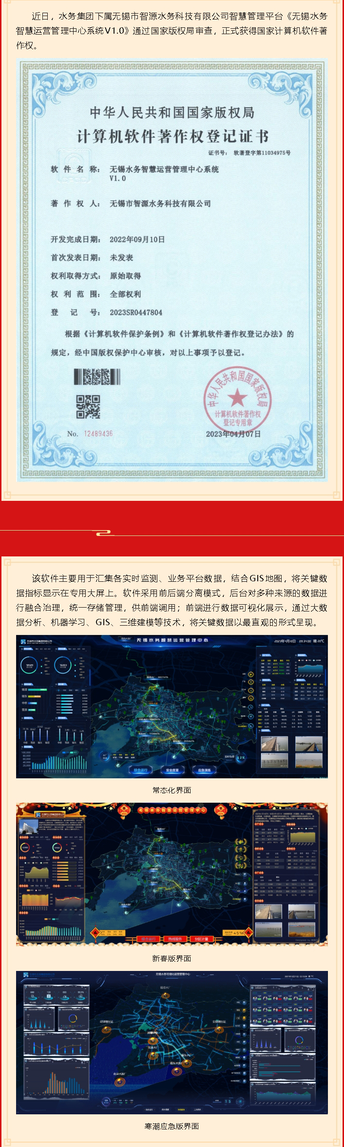 喜报!水务集团一项科技成果荣获国家国家计算机软件著作权