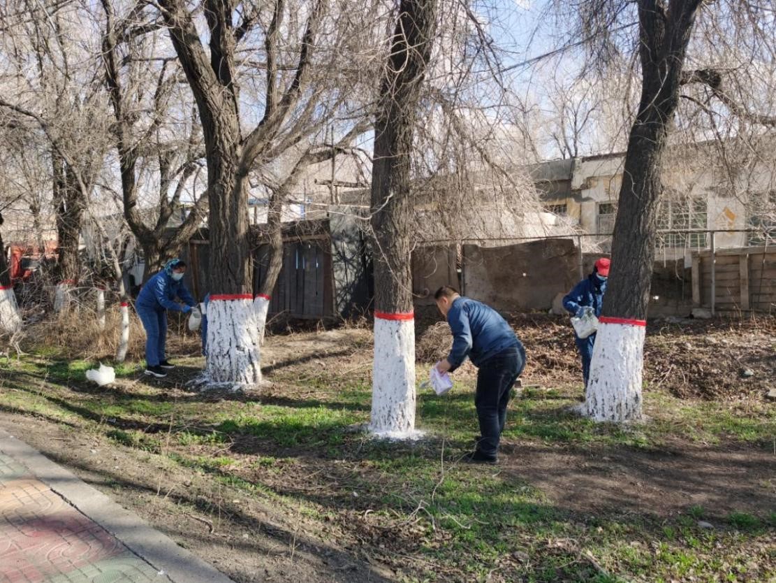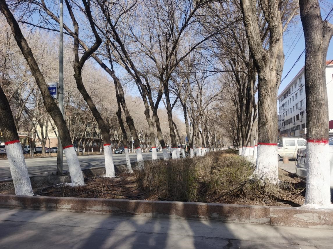 在现场,公司党员职工分工协作,处理枯草、打扫环境卫生、刷树同时进行,大家热情高涨,以劳动为荣,乐在其中。他们手持小桶和刷子,先后来到分包路段、水厂门口及院内、公司门口及院内为每棵树木标定基准线,严格按照标准作业,粉刷高度从树根至基准线以上1.2米,确保整齐划一,整洁美观,在大家共同努力下,一棵棵树木相继穿上了白色“新衣” 。