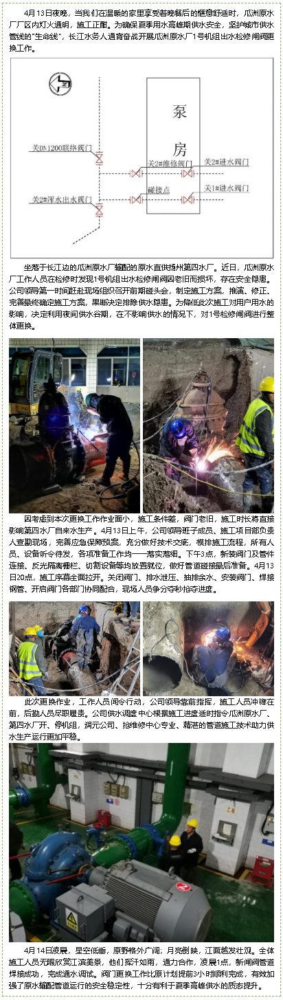 艰辛不言苦 攻坚不畏难 公司完成瓜洲原水厂1号机组检修阀门更换