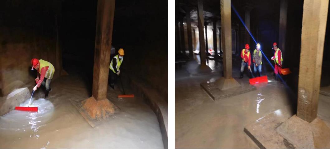 由于近期气温低,加之工作负荷量大,但大家不怕苦,不怕累,冰冷的泥水侵透衣服,特别是党员干部,他们充分发挥模范带头作用,重活累活抢着干,污泥沾身不在乎,大家齐心协力,配合默契,克服水池内的潮湿阴冷,抢在规定的时间内完成了清洗,消毒工作,确保了水质安全可靠。