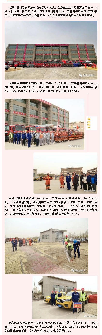 锡林浩特市给排水有限责任公司参加“锡林使命”2023地震灾害综合应急救援实战演练
