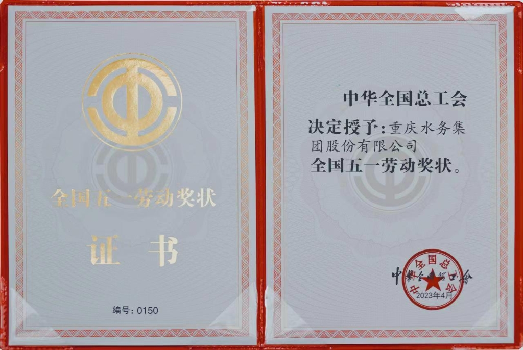 重庆水务集团股份有限公司获“全国五一劳动奖状”。重庆水务集团供图