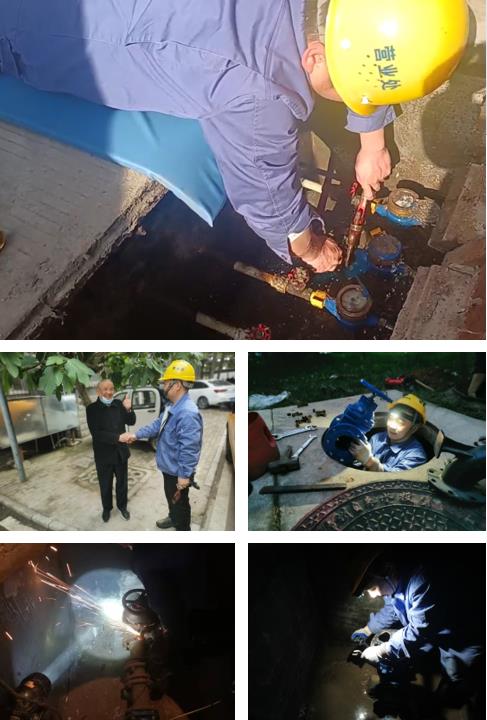 5月1日,金水维修班值班人员杜克印接到用户求助,位于农业路实中家属院突发漏水,希望能到现场协助止水。杜克印迅速驱车赶到现场,经排查院内主管道漏水,需要对家属院总表进行关闭,但下井操作时发现表井内两个DN150阀门已经损坏不能关闭,必须先对损坏阀门进行更换。小区没有停水阀门,需要三强公司进行协助停水。正值“五一”假期,看着因漏水非常着急的用户,杜克印立刻将情况向徐志举班长进行汇报。徐班长马上启动假期抢修预案,火速调集班组人员来到现场增援,并与三强公司沟通办理停水相关事宜。待支援人员到达,三强公司人员也到现场进行停水查图,并启动紧急停水申请审批通过后,现场开始停水作业,金水维修班311车组人员全员到位,分工明确,下井切割螺丝,井上准备水泵、搬运阀门,对损坏的阀门进行拆卸。为了缩短停水时间,当文化路两个DN500阀门成功关闭后,立即对损坏的阀门进行快速更换。在大家紧张有序、通力协作下,以最短的时间完成表前阀门更换,止住漏水。实中家属院责任人员看到为了帮助止水解决问题,在“五一”放假期间自来水公司两个单位的维修人员加班过来施工,对这种为民服务的态度和积极性给予赞许。