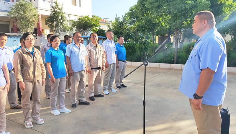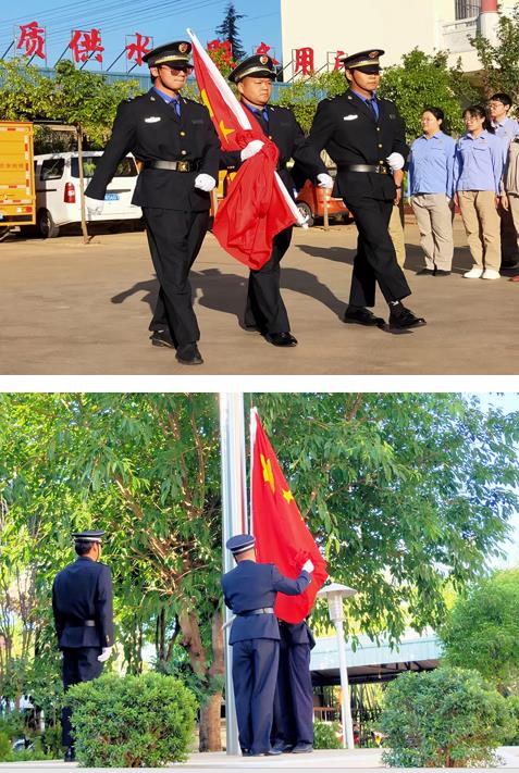 2023年5月4日上午八时正,弥勒供水公司全体党员团员整装完毕,参加五四升国旗仪式。伴随着庄严的中华人民共和国国歌《义勇军进行曲》响起,全体党员、团员齐声吟唱国歌,向缓缓升起的国旗行注目礼,仿佛心潮澎湃,感受着五四精神的熏陶!