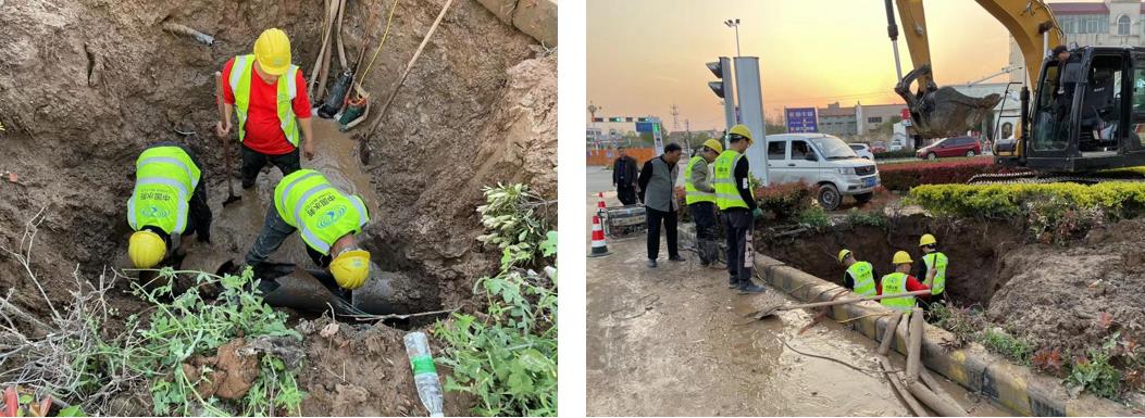 4月7日下午15时30分,“叮叮叮~是自来水公司吗,你们快派人来看看吧,这个十字路口全都是水……”电话那头传来急促的声音;“你好,我们小区怎么突然没水了……”热线电话蜂拥而至一个接着一个。接到报漏电话,管网部维修队迅速赶往抢修现场。经检查,新焦路与东环路交叉口处DN315mm供水主管被损坏,该管道的损坏导致东部半个城区居民生产生活受到影响,施工队立即确定抢修方案火速开始施工。