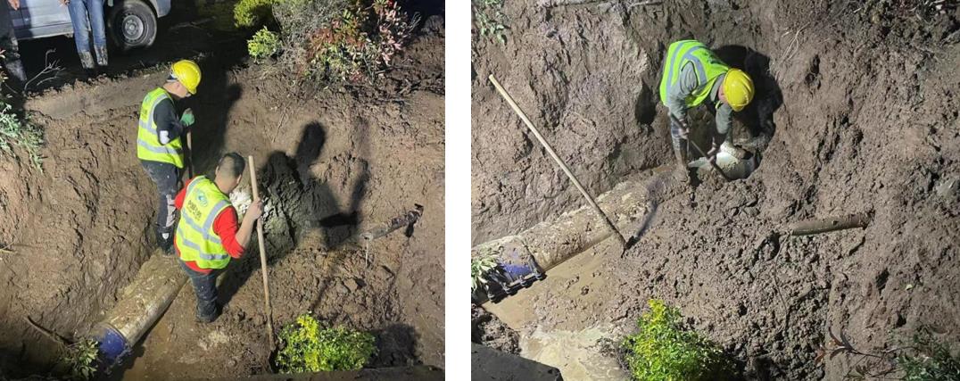 天色开始渐渐暗下来,夕阳透过云彩照射在一个个满身裹着泥巴的水务人身上。为尽快恢复供水,他们泡在泥坑里将近10个小时滴水未进,饥饿早已被抛之脑后,已分不清楚双脚是因站的太久还是泥水冰凉带来的麻木。施工队经过地面开挖、爆管点确定、管道更换、焊接等一系列工序有条不紊地推进,经过将近10个小时的连续奋战,于凌晨12点抢修完毕,居民用水恢复正常。