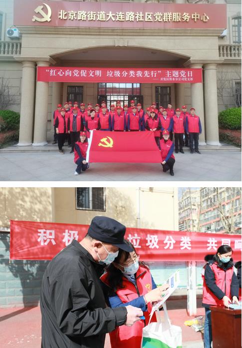 党员带头树榜样各单位广泛开展垃圾分类进社区活动,与望海社区和大连花园社区共同成立垃圾分类党员志愿服务队,向居民派发《日照市生活垃圾分类指导手册》等宣传册,引导居民学会生活垃圾正确分类、规范分类。同时,鼓励他们从自身做起,自觉参与到垃圾分类工作中来,坚持做好垃圾分类,努力带动身边的人进行垃圾分类。