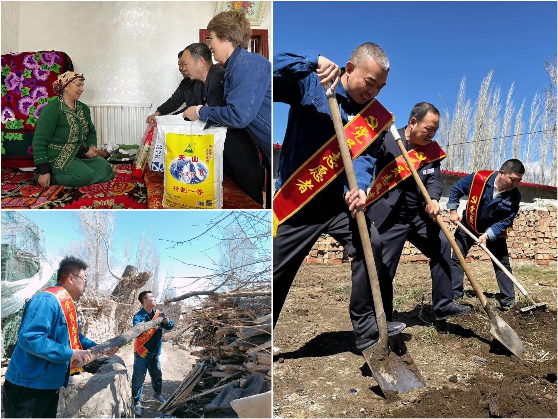 党支部通过工作队了解到乔力旁·阿尤甫年事已高,子女均不在身边,生活较为困难。支部带着米面油等慰问品前往家中,详细询问老人的身体状况、生活情况和收入来源,并叮嘱老人要注意保重身体。在交谈中得知乔力旁·阿尤甫想要在院子里的空地上种植一些时令蔬菜自给自足,但年龄大了,行动不便,以至于迟迟未动工。于是,党员志愿者拿着铁锹,一铲一铲的把休耕了一冬的土地翻起来,再把土壤拍打松软平整,等待着铺膜、栽种。